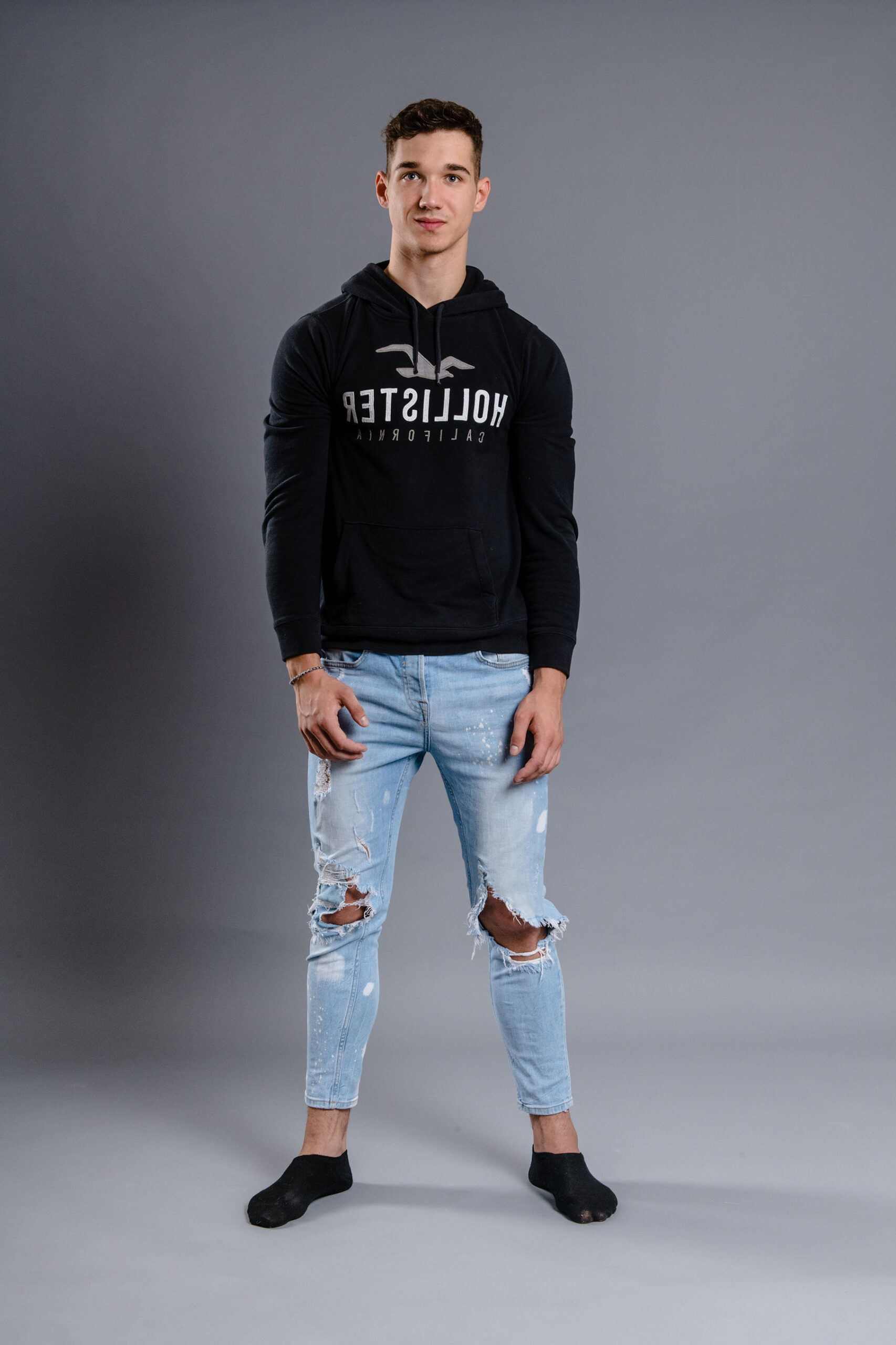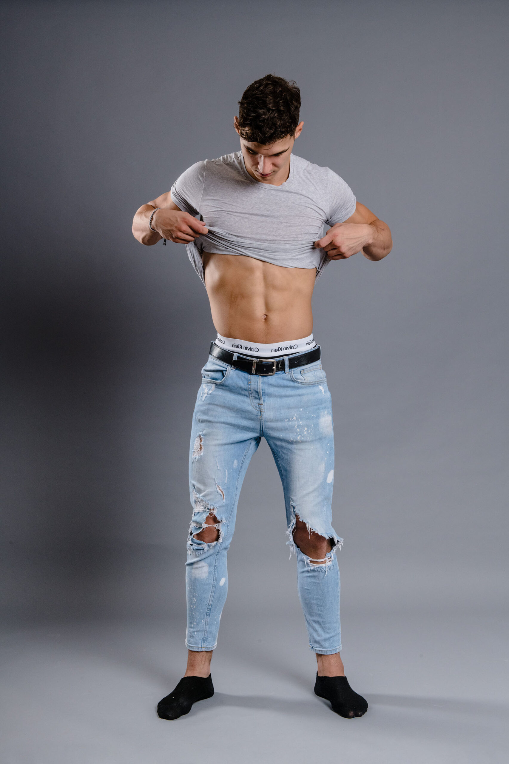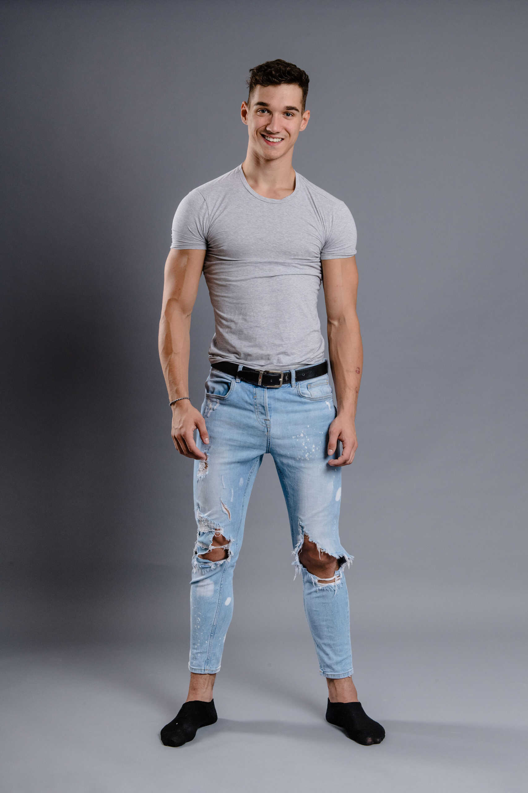 En dehors de son apparence physique impressionnante, Thomas se distingue par sa gentillesse et son humilité, des qualités qui m’ont immédiatement séduit. Cependant, j’ai dû lui donner quelques conseils pour notre séance photo. Quand il est sorti de la salle de bain avec les cheveux soigneusement coiffés en arrière, je lui ai demandé de retourner les décoiffer un peu. Je lui ai conseillé de « ressembler à un gars normal, pas à un mannequin ».