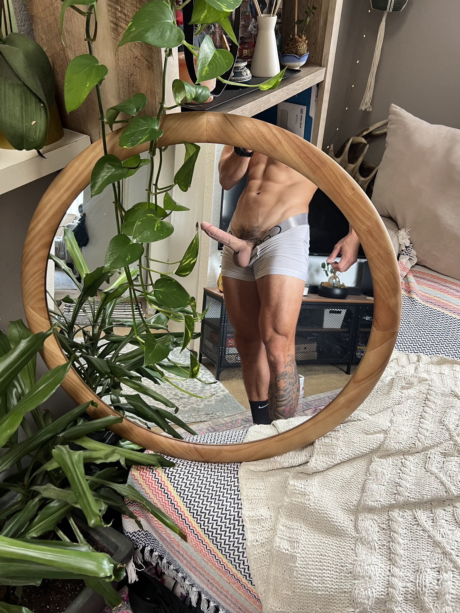 Ce beau brun vit a 24 ans et vit sur Hawaï, bien qu’hétéro, il n’hésite pas à se mettre nu, et bien raide sur son compte Onlyfans.