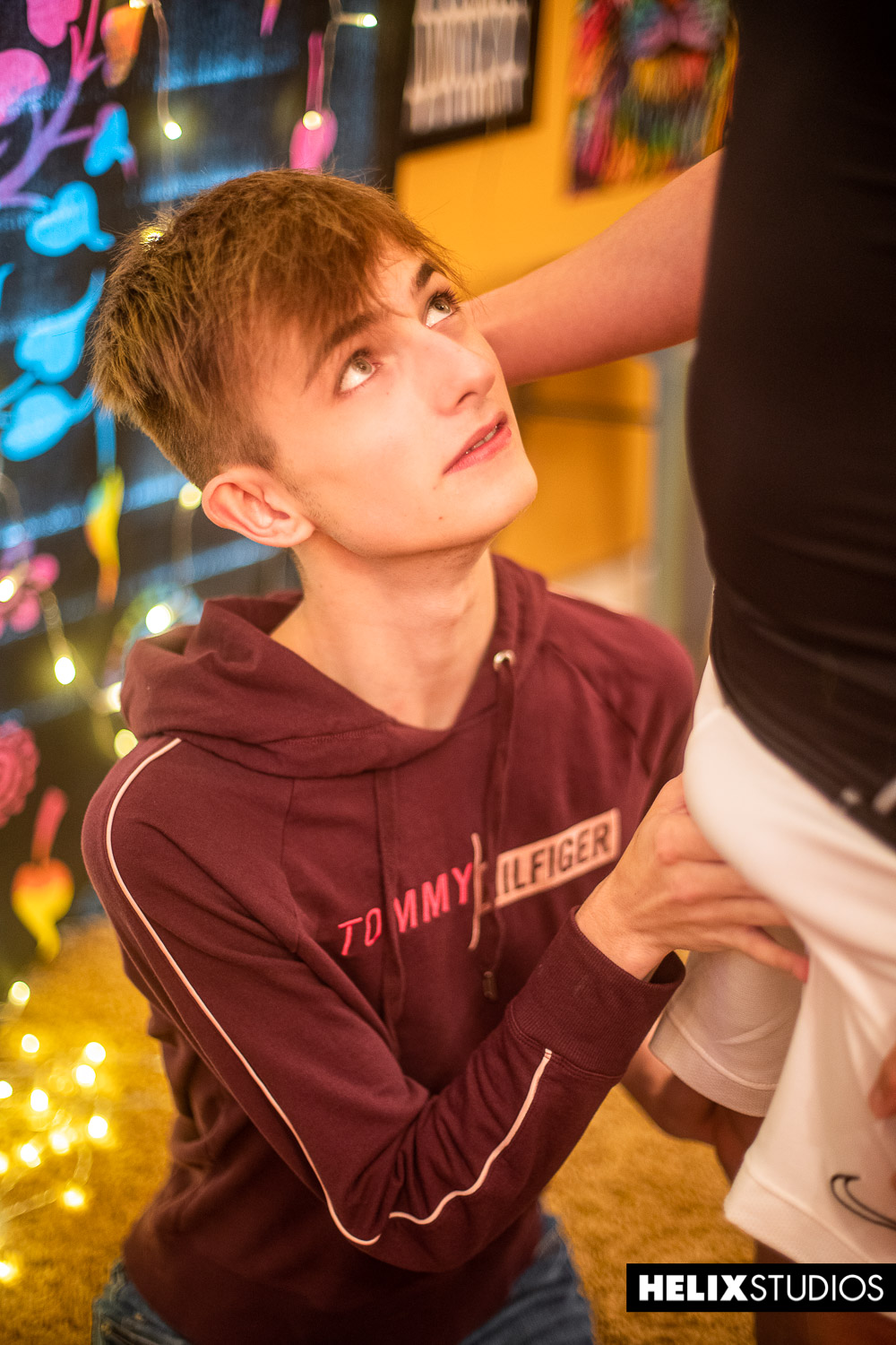 Silas déshabille le jeune mec et lui livre une pipe époustouflante qui fait gémir Aaron . Brooks jette les jambes du minet au-dessus de sa tête et bouffe son petit trou rose comme un affamé. Après la délicieuse gâterie, Silas dit au minet: « Tu te fais baiser? » .